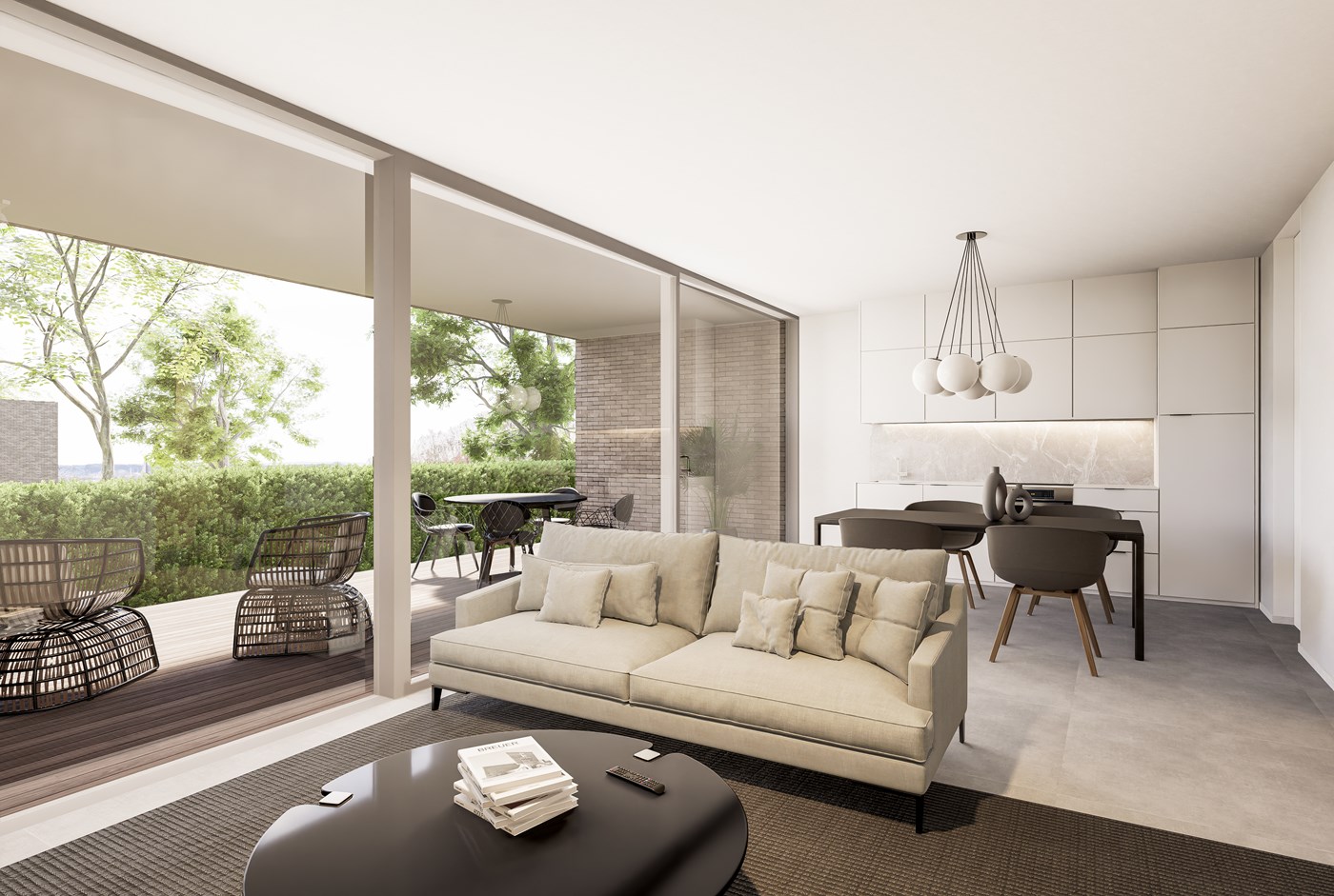 L’architecture du Parc de Lorette allie modernité et élégance, avec de grands espaces de vie lumineux et confortables. Les matériaux haut de gamme, aux teintes naturelles et harmonieuses, s'intègrent parfaitement dans l'environnement boisé.