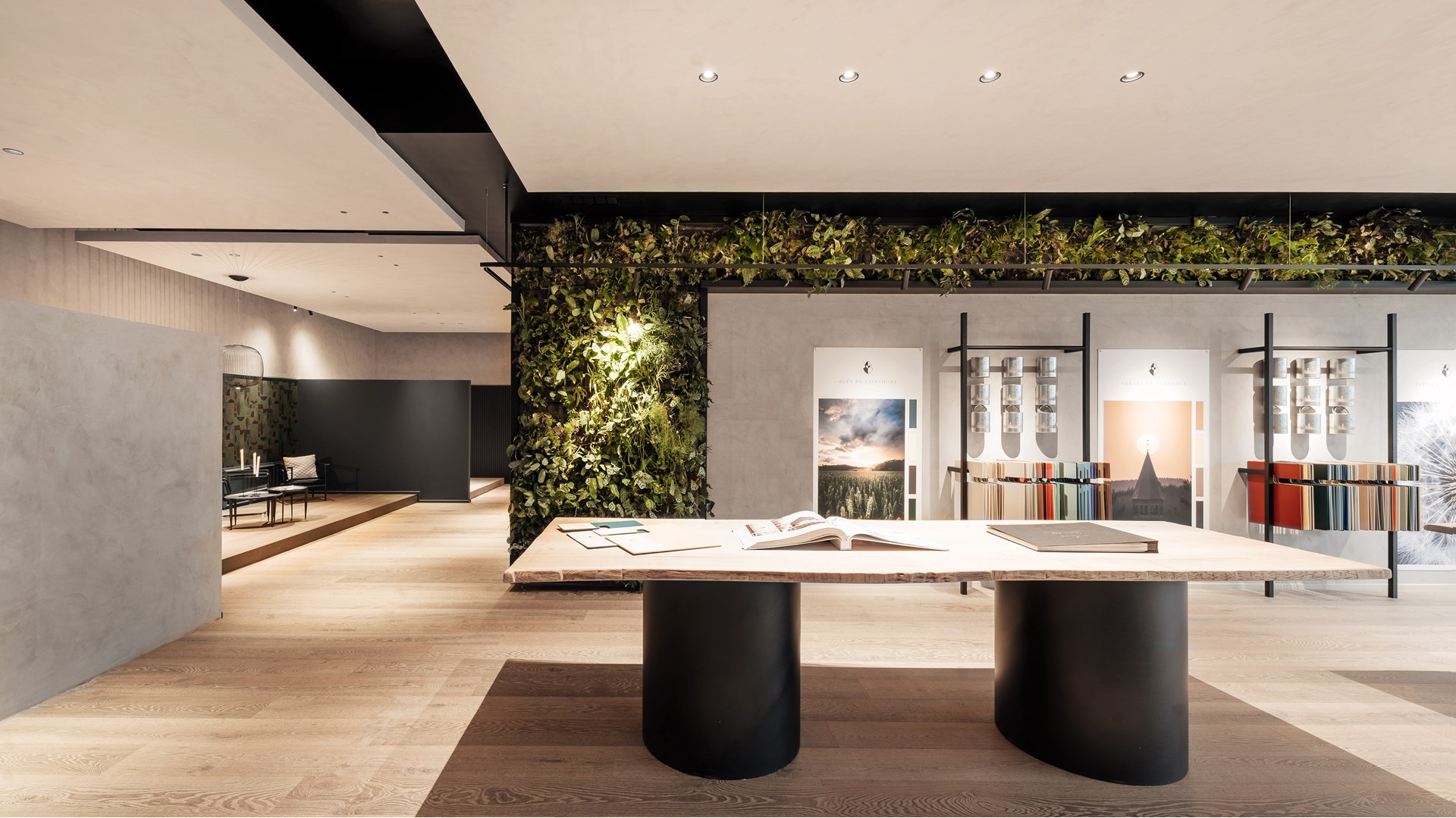 Le showroom a été entièrement repensé par les équipes du bureau d’architecture d’intérieur Luc Spits afin de mettre en avant les matières et le savoir-faire de la marque. Un doux équilibre entre matières naturelles et brutes.